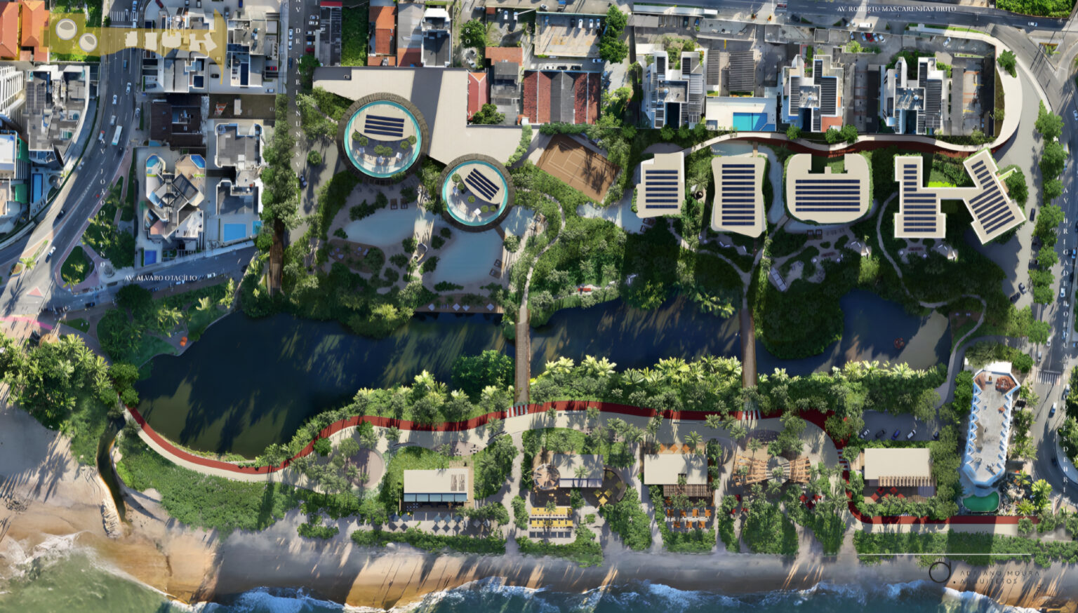 O plano inclui a criação de um grande calçadão com bares, restaurantes, lojas de artesanato, jardins abertos e áreas de estar, ampliando as opções de lazer na região da orla. A proposta visa integrar o resort com a cidade, quebrando a lógica tradicional dos empreendimentos turísticos fechados.