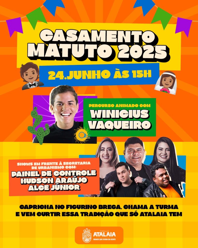 A Prefeitura de Atalaia realiza, nesta terça-feira, 24 de junho, a edição 2025 do tradicional Casamento Matuto, evento que integra a programação oficial do São João no município e já se consolidou como uma das manifestações culturais mais aguardadas pela população.