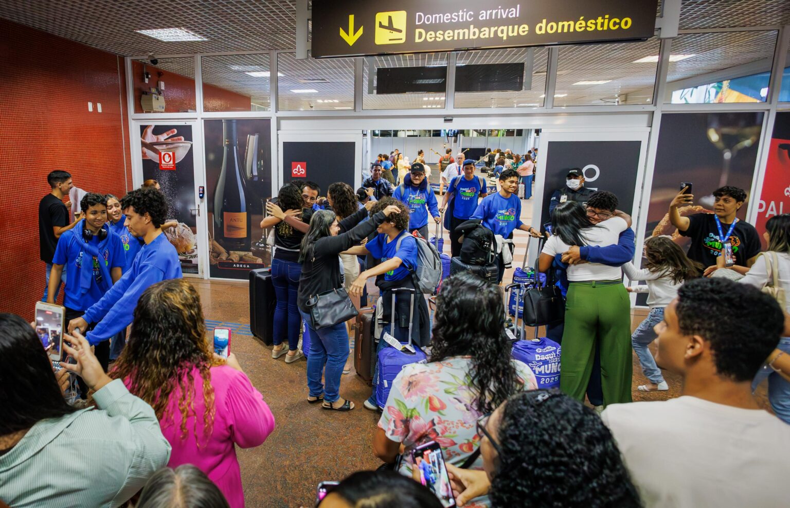 A ansiedade, o choro e a alegria se misturaram em uma emoção avassaladora neste sábado (6), no Aeroporto Internacional Zumbi dos Palmares. Após um mês de imersão cultural e linguística em cinco cidades da Inglaterra – Oxford, Cambridge, Canterbury, Brighton e Bournemouth –, os 100 estudantes alagoanos do programa Daqui pra o Mundo retornaram ao lar. Os jovens desembarcaram em dois voos distintos, ambos com origem no Aeroporto de Guarulhos, em São Paulo, e foram recebidos por uma multidão de pais, familiares, amigos e autoridades.