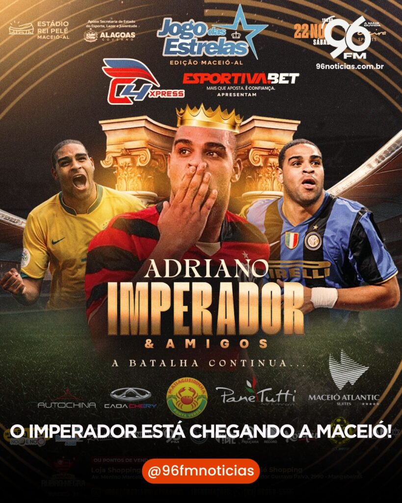 Pela primeira vez em Maceió – AL, teremos a honra de receber o Jogo das Estrelas – Adriano Imperador, ídolo do Flamengo, Inter de Milão e Seleção Brasileira, em um grande jogo solidário que vai unir futebol e solidariedade!